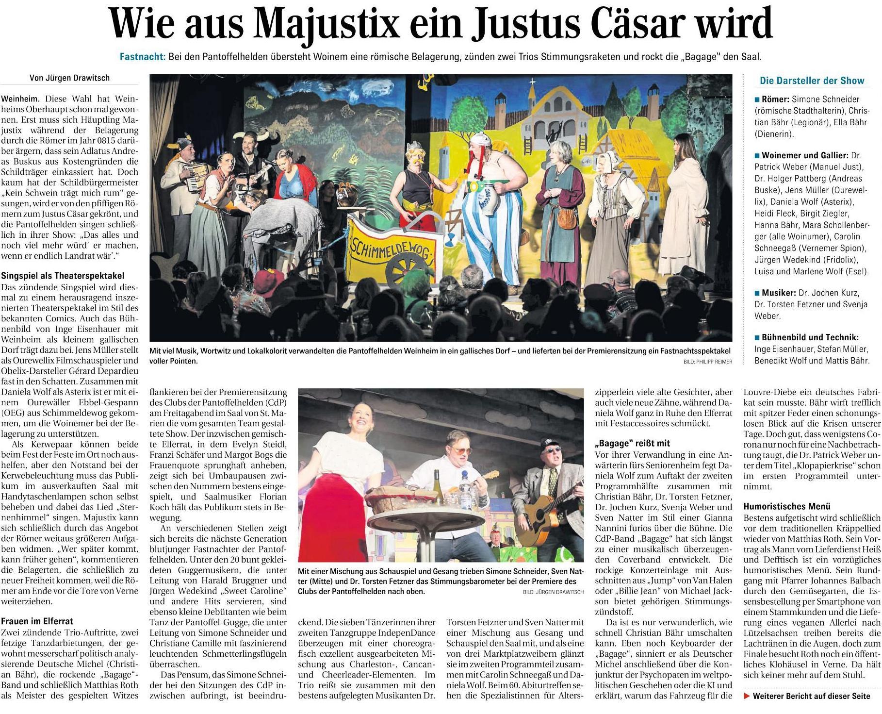 Das traditionelle Singspiel, welches die Weinheimer Lokalpolitik humoristisch auslegt, stellt wieder einen Höhepunkt dar.