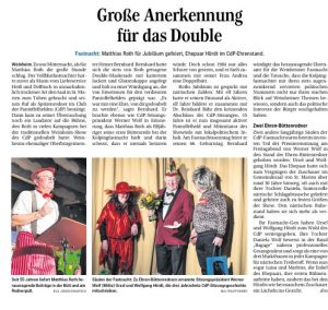 Im Rahmen des Sektempfangs wurden auch dieses Jahr zahlreiche Helfer für Ihre lange Treue zu den Pantoffelhelden geehrt. Neben den Auszeichnungen für 5 und 11 Jahre Verbundenheit zum CdP, gingen die Ehrenurkunden in diesem Jahr für 22 Jahre an Stefan Müller und Karlheinz Schmitt.