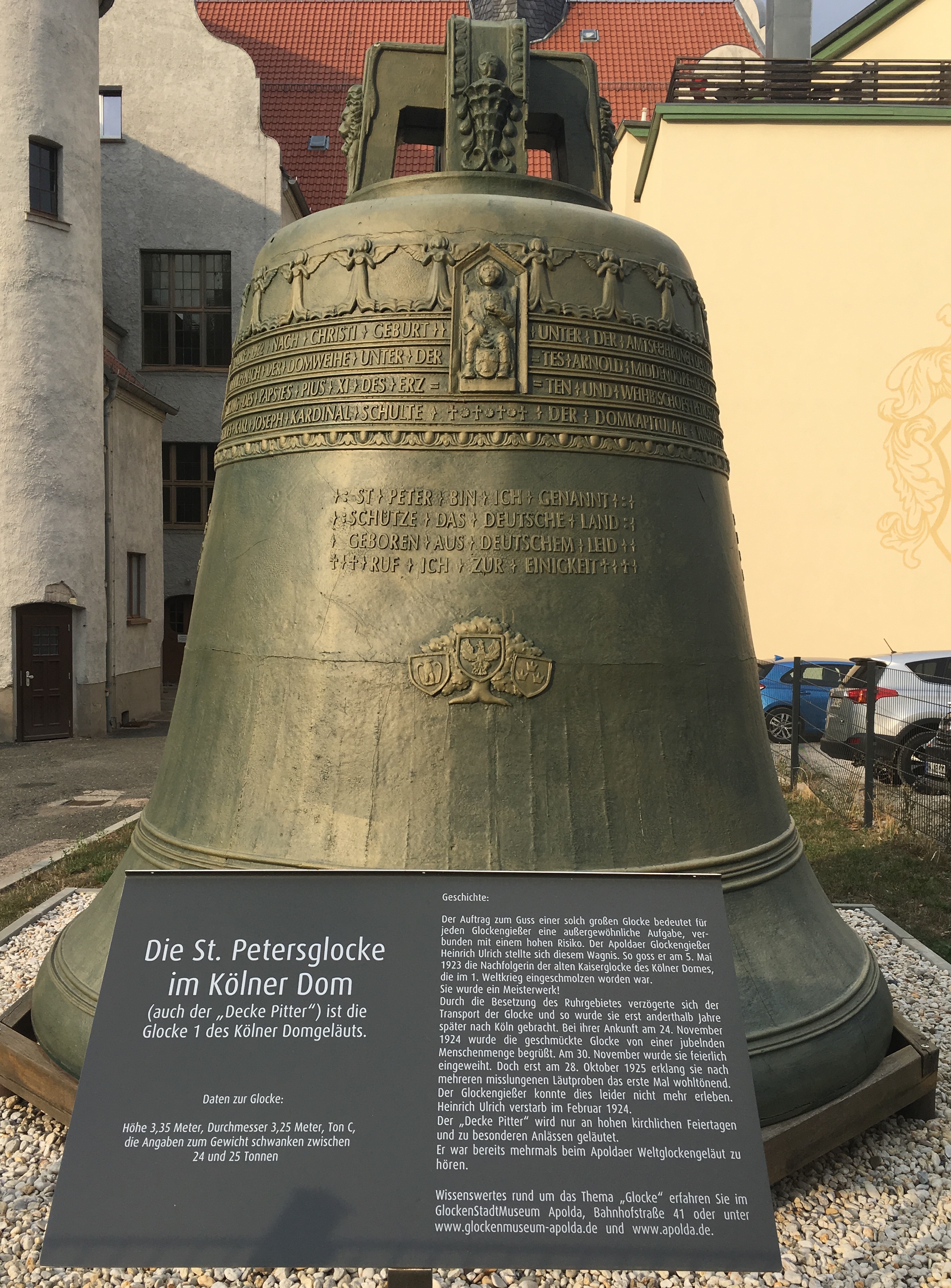 Aufgrund der 250-jährigen Tradition des Glockengießens ist die Stadt bis heute überregional bekannt. Geläute aus der Produktion von Apolda hängen in zahlreichen Sakralbauten auf fünf Kontinenten.