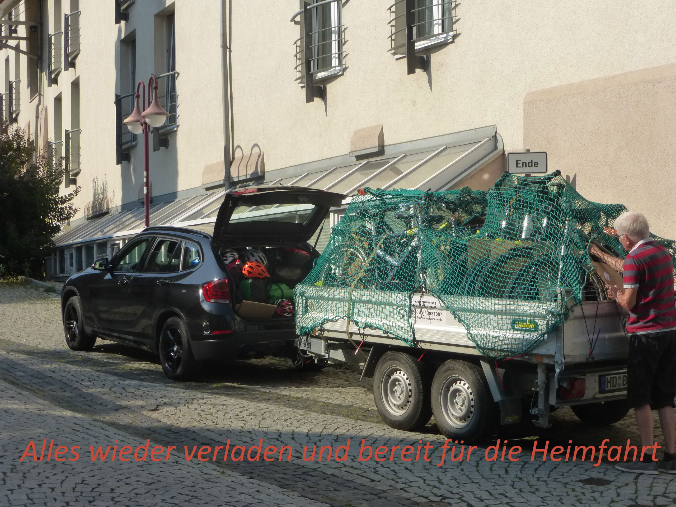 Nach der Übernachtung im dortigen Schlosshotel trat die Gruppe nach dem sicheren Verladen der Fahrräder auf den Anhänger die Heimreise mit der DB an.